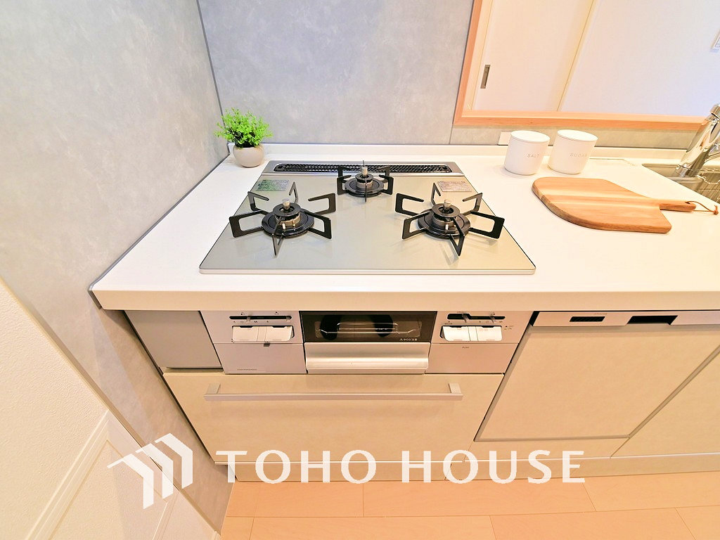 3口ガスコンロでお料理のスピードもUP。効率よくお料理できますね