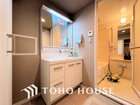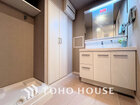 落ち着きのある色合いでまとめられた洗面室