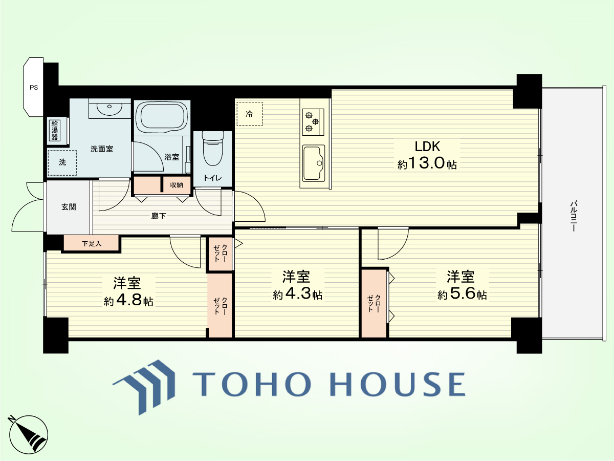 3LDK 専有面積61.6平米、バルコニー面積7.84平米
