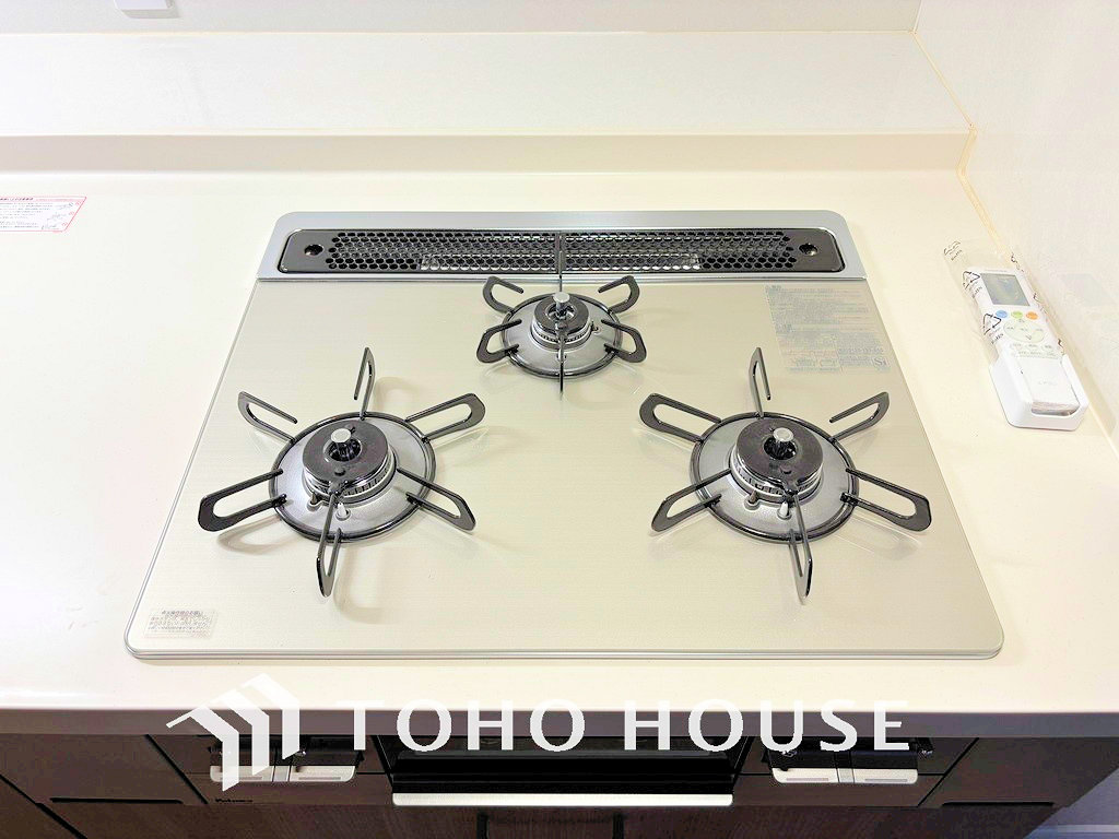 3口ガスコンロでお料理のスピードもUP。効率よくお料理できますね