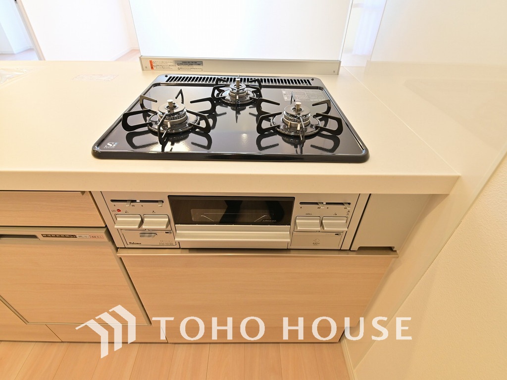3口ガスコンロでお料理のスピードもUP。効率よくお料理できますね