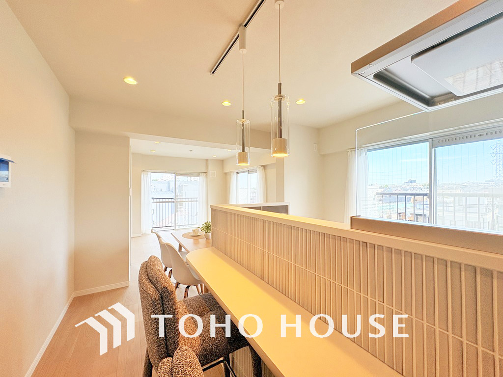 キッチンにはカウンターが付いており、ご家族とコミュニケーションを取りながらお料理できます