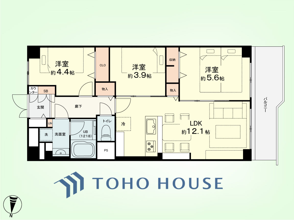 3LDK+LIN 専有面積61.6平米、バルコニー面積7.6平米