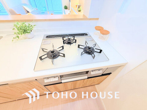 3口ガスコンロでお料理のスピードもUP。効率よくお料理できますね