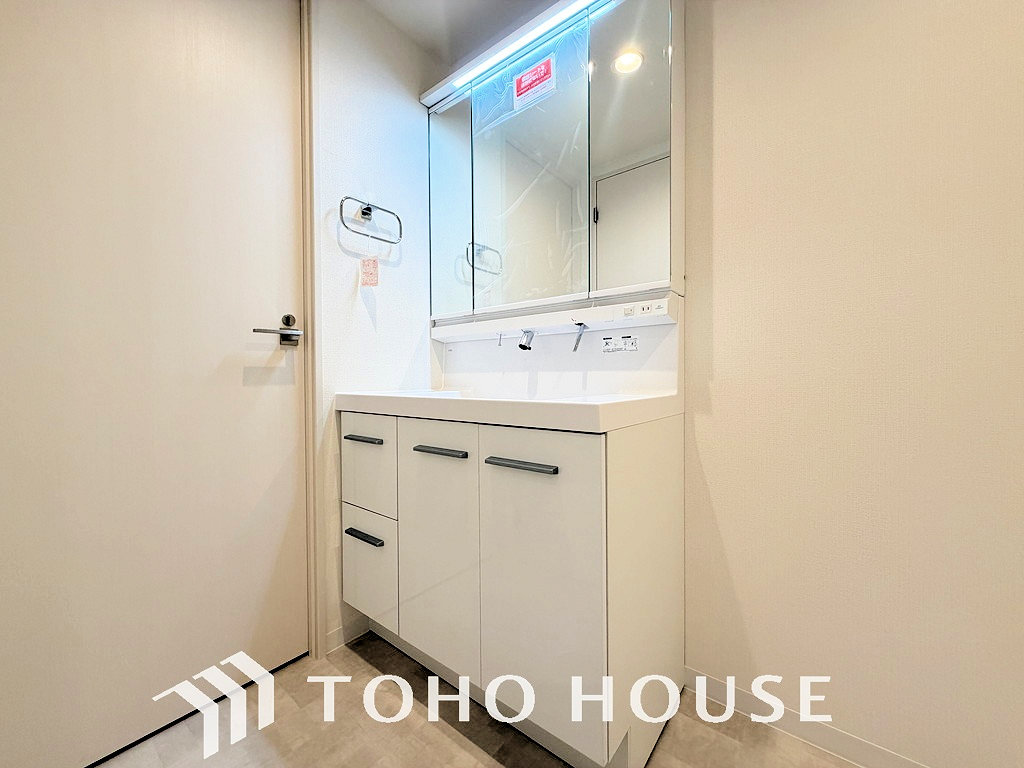 大きな洗面鏡付き、朝の身支度も楽しくなりますね