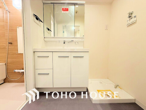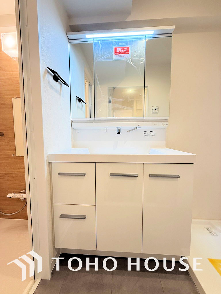 大きな洗面鏡付き、朝の身支度も楽しくなりますね