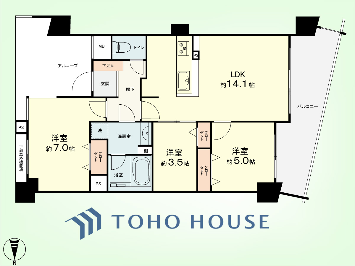 3LDK 専有面積65.7平米、バルコニー面積10.12平米