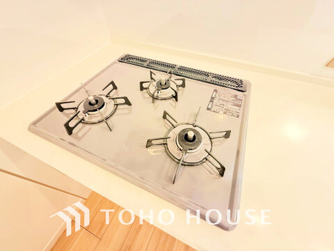 3口ガスコンロでお料理のスピードもUP。効率よくお料理できますね
