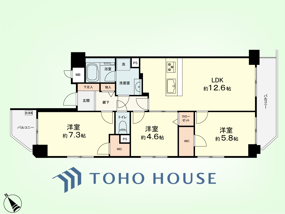 3LDK 専有面積67.13平米、バルコニー面積9.13平米