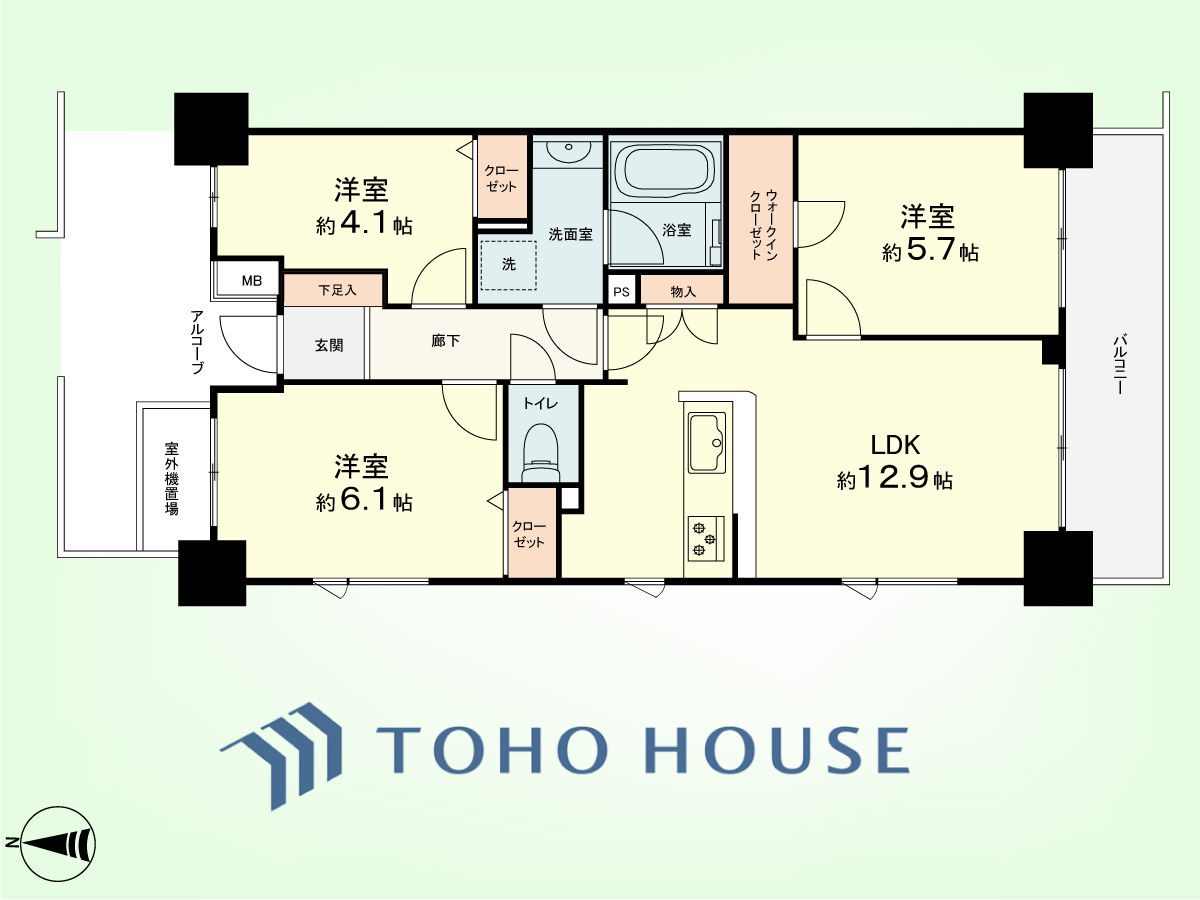 3LDK 専有面積64.05平米、バルコニー面積7.78平米