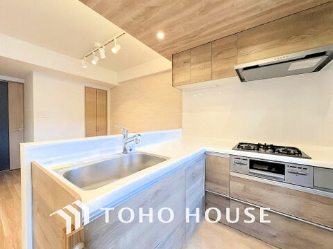 落ち着きのあるカラーで統一された清潔感と気品が溢れるキッチン(現地には家具があります)