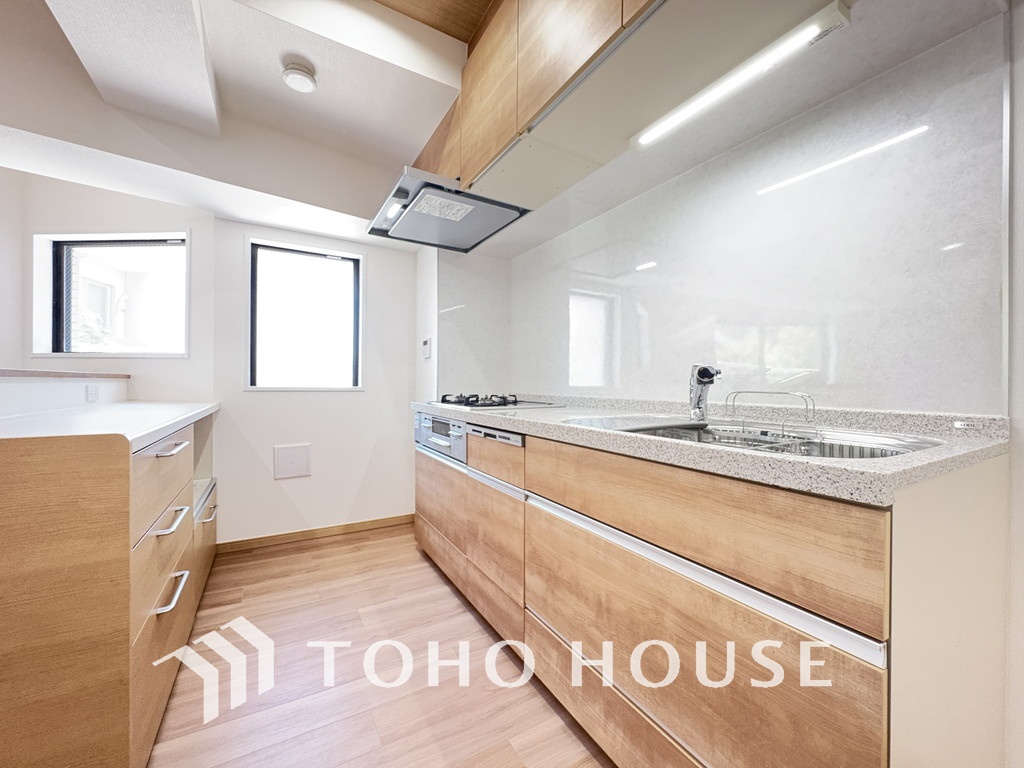 ビルトイン式食洗機を完備した、機能性に優れたシステムキッチン