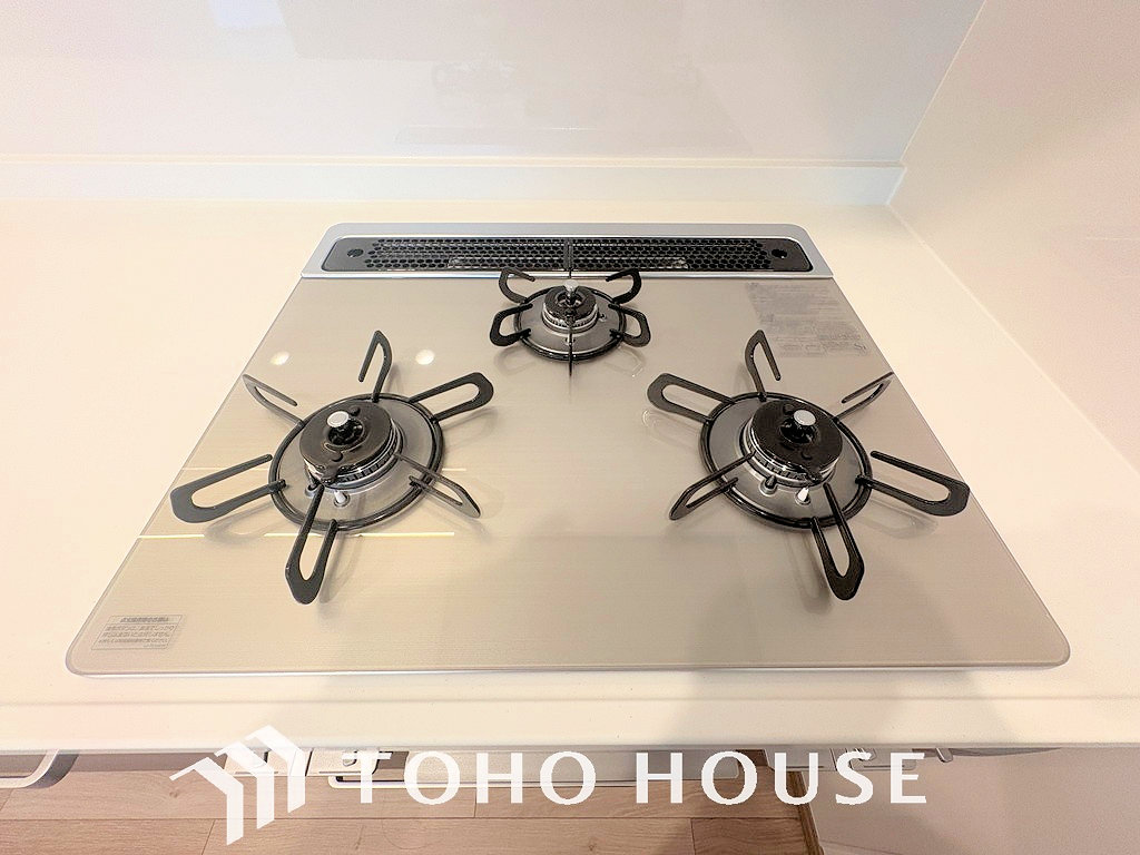 3口ガスコンロで効率よくお料理できますね