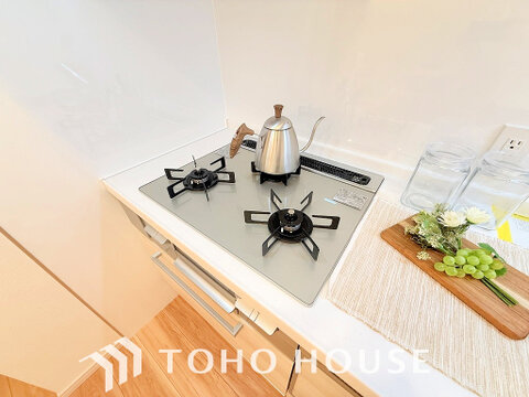 3口ガスコンロで効率よくお料理できますね