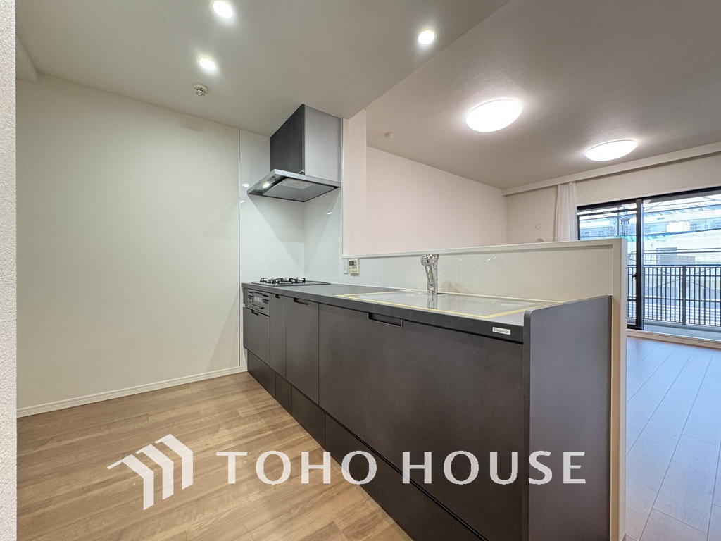 シンプルな部屋の雰囲気に溶け合うナチュラルキッチン
