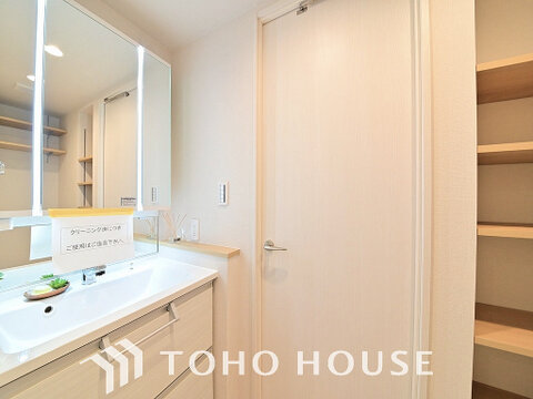 大きな洗面鏡付き、朝の身支度も楽しくなりますね