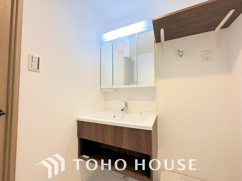大きな洗面鏡付き、朝の身支度も楽しくなりますね