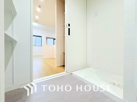 落ち着いた雰囲気の玄関、家族の帰りを暖かく迎えてくれます