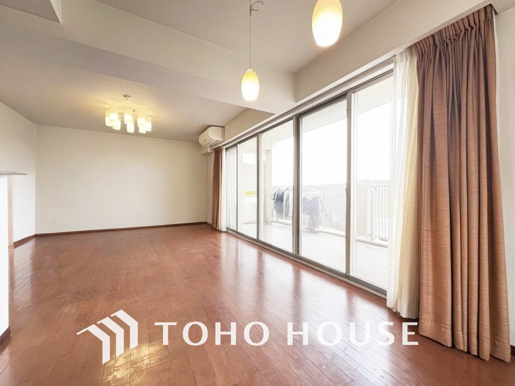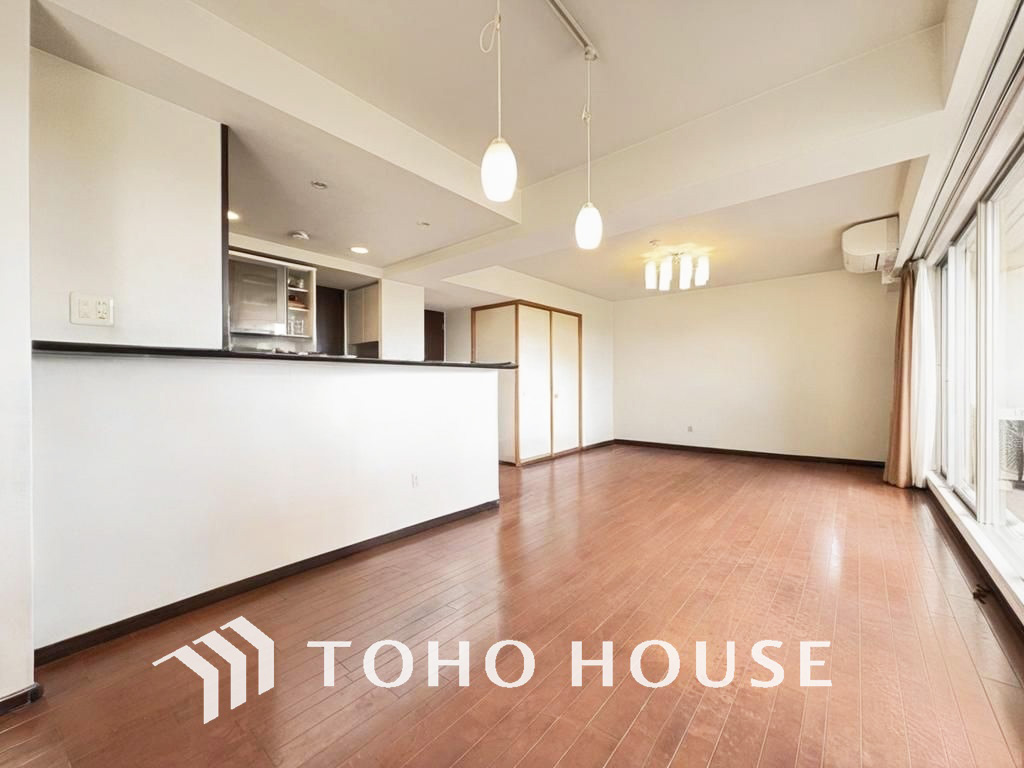 約20帖超のゆったりLDKは家族団欒の空間、会話もはずむ明るいリビング(現地には家具があります)