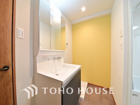 白を基調とした清潔感のある洗面室で朝の身支度を