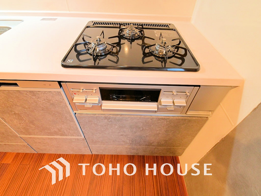 3口ガスコンロでお料理のスピードもUP。効率よくお料理できますね
