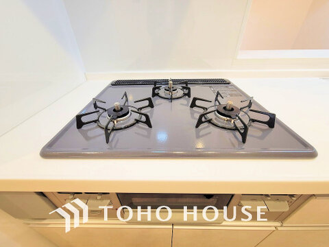 3口ガスコンロでお料理のスピードもUP。効率よくお料理できますね