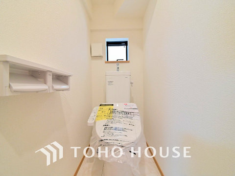 白いクロスにより清潔感のあるトイレ