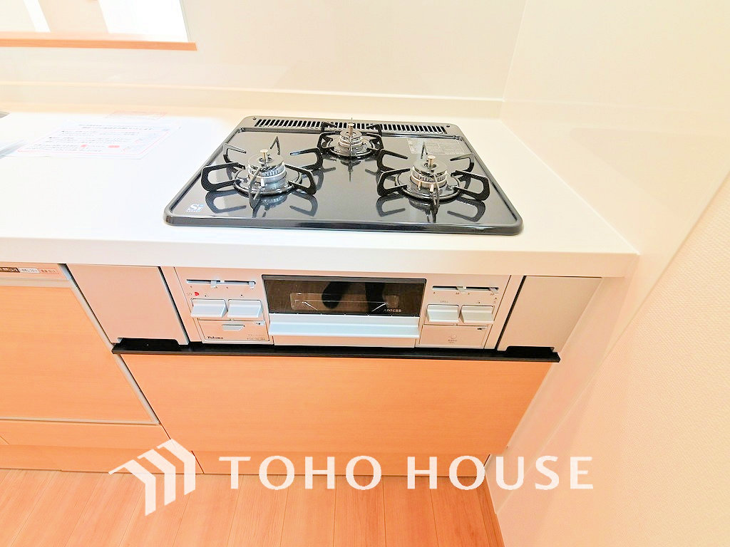 3口ガスコンロでお料理のスピードもUP。効率よくお料理できますね