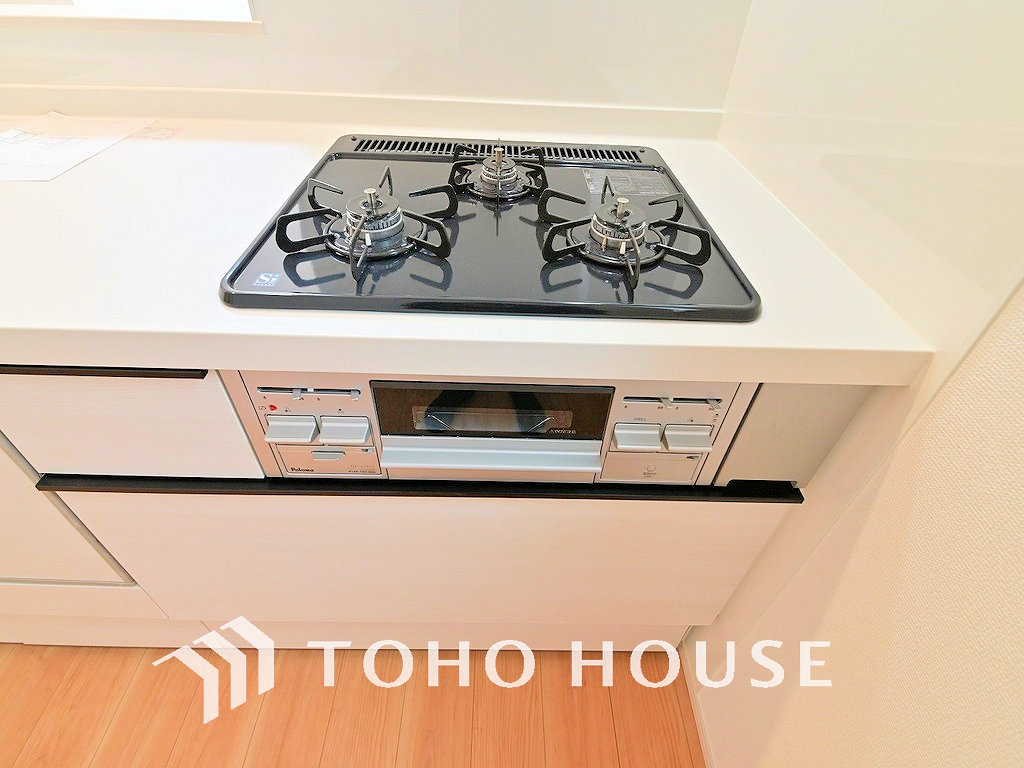 3口ガスコンロでお料理のスピードもUP。効率よくお料理できますね