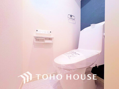 白いクロスにより清潔感のあるトイレ