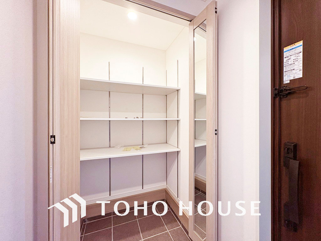 天井まである玄関収納はご家族分の履物も余裕で収納可能