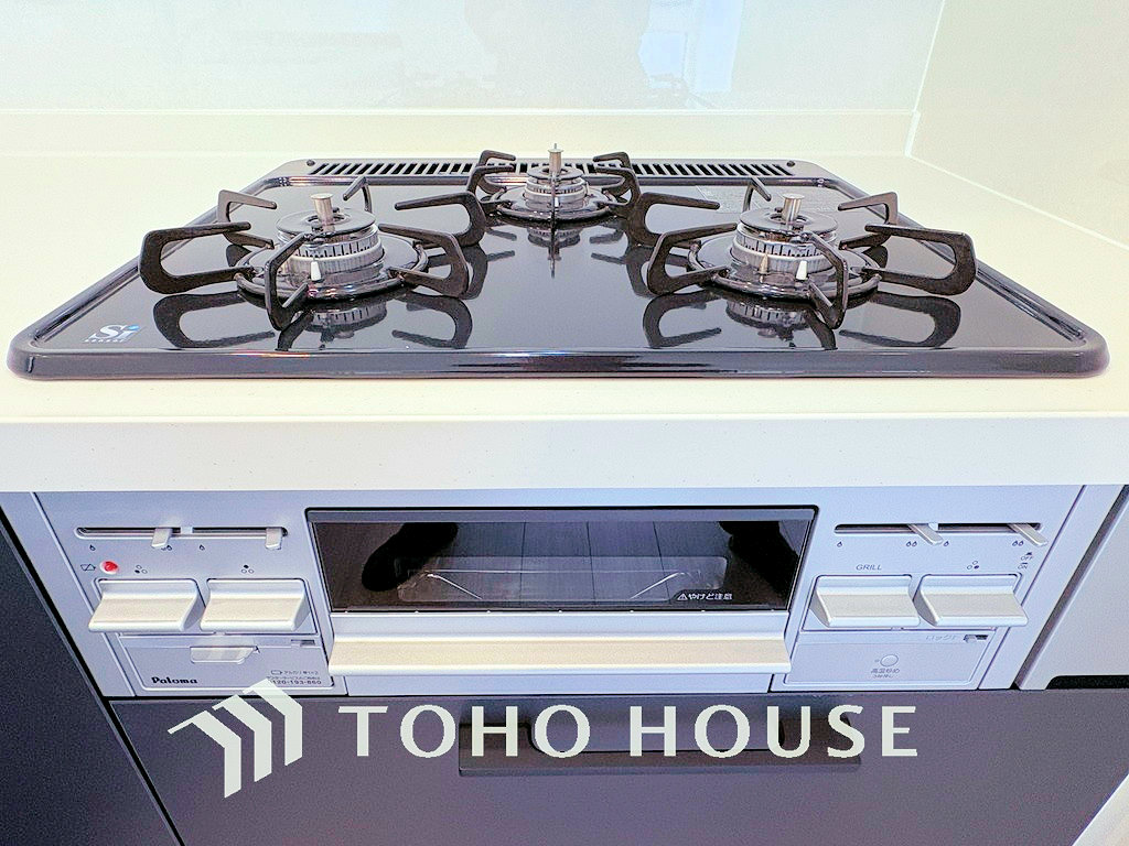 3口ガスコンロでお料理のスピードもUP。効率よくお料理できますね