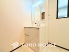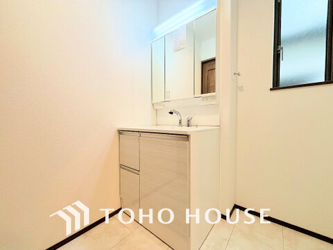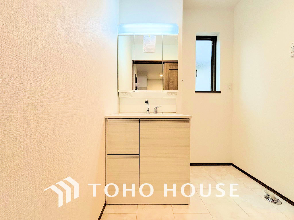洗面台には三面鏡を採用。身だしなみを整えやすく収納量も良好です