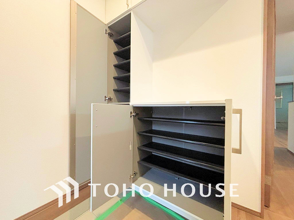 天井まである玄関収納はご家族分の履物も余裕で収納可能