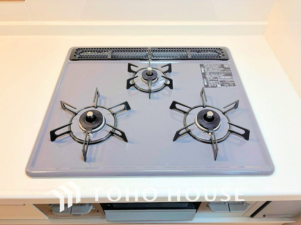 3口ガスコンロでお料理のスピードもUP。効率よくお料理できますね