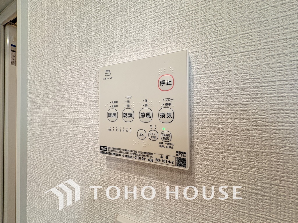 浴室乾燥機を完備しているので雨天時や花粉の季節でも安心です