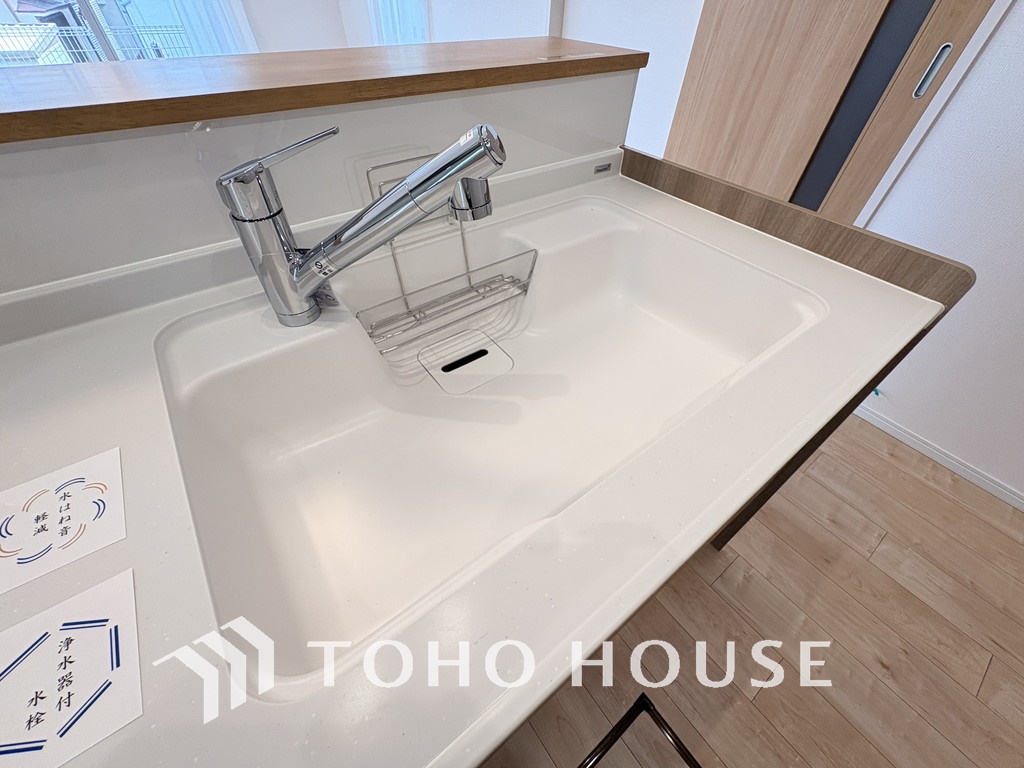 浄水機が内蔵されている便利なシャワー水栓タイプのシンクです