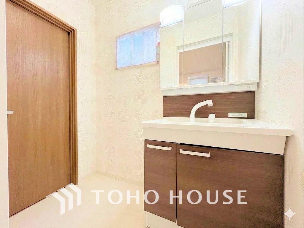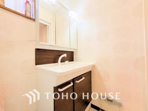 収納豊富で使い勝手の良い3面鏡仕様の洗面化粧台(現地には家具があります)