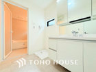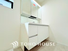 白を基調とした清潔感のある洗面室で朝の身支度を