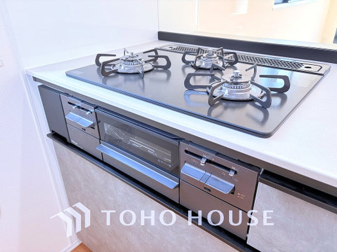 3口ガスコンロでお料理のスピードもUP。効率よくお料理できますね