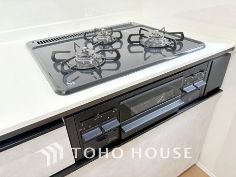 3口ガスコンロでお料理のスピードもUP。効率よくお料理できますね