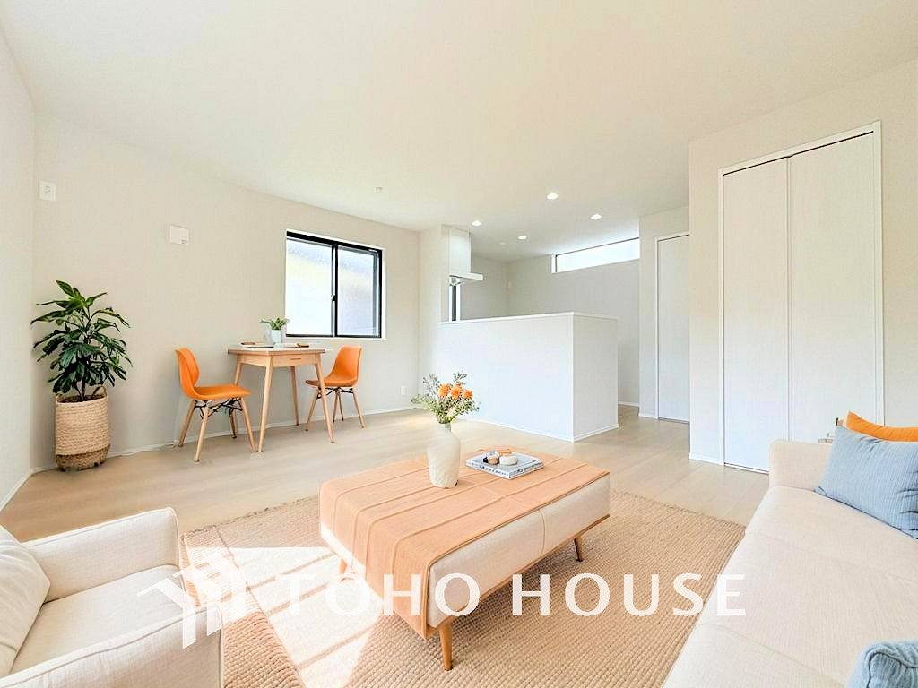 広がりのある住空間、家族が集まるリビング・ダイニング(家具は全てCGです)