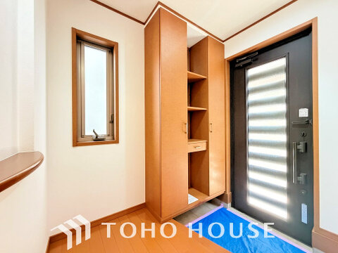 落ち着いた雰囲気の玄関、家族の帰りを暖かく迎えてくれます