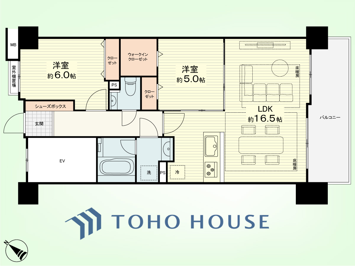 ~最寄り駅徒歩1分、10階部分南東向き住戸~床暖房付き2LDK住戸~