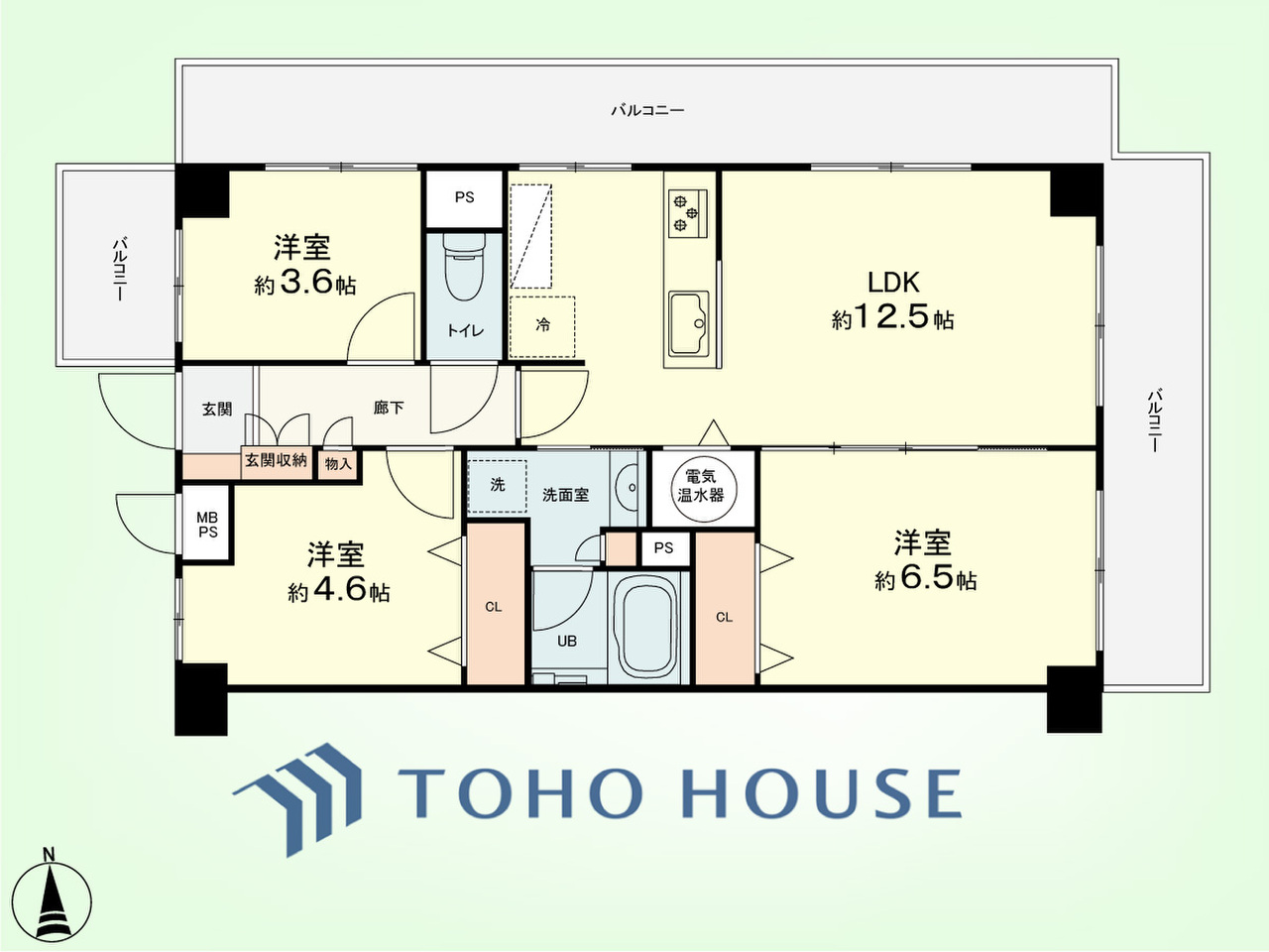 3LDK 専有面積59.45平米、バルコニー面積19.26平米