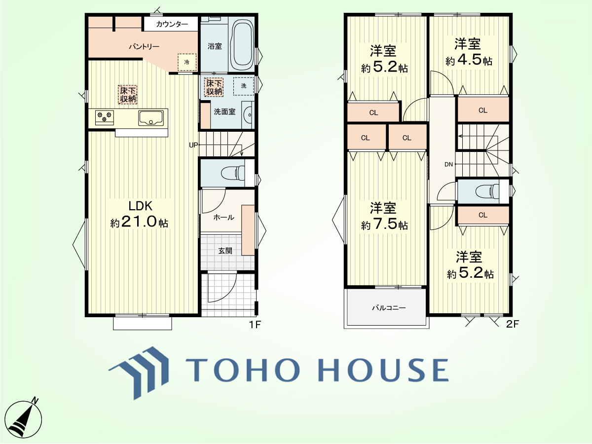 4LDK+パントリー、ランドリールーム 土地面積114.10平米、建物面積101.85平米